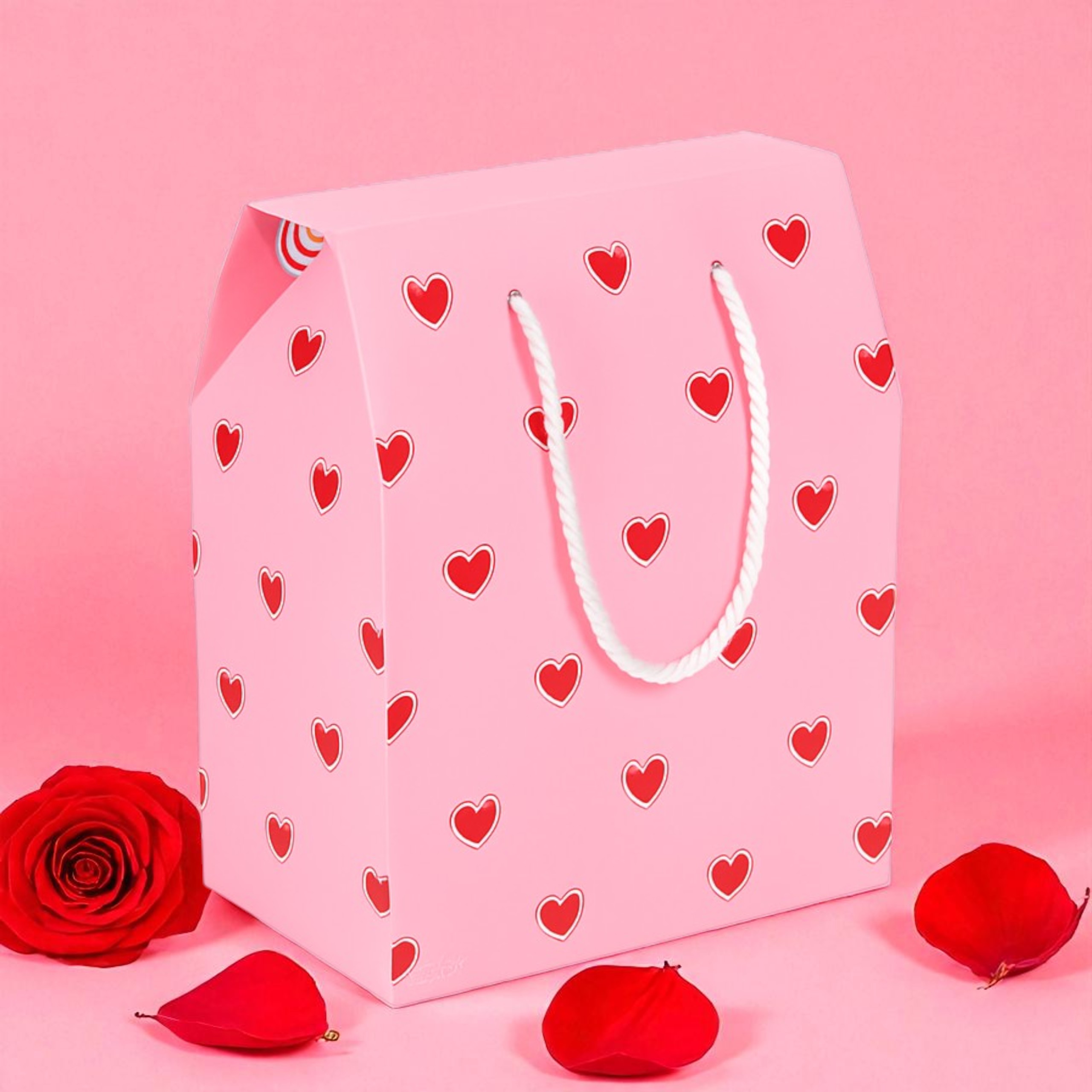 Kırmızı Kalpli Kraft Tasarım Premium Hediye Kutusu