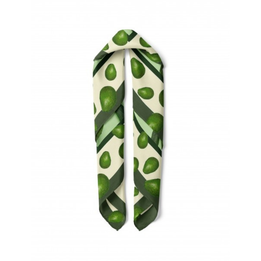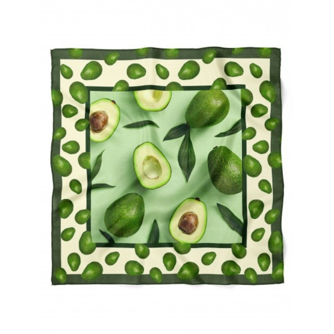 Avokado Desenli İpek Saten Fular – Doğal ve Enerjik Bir Dokunuş