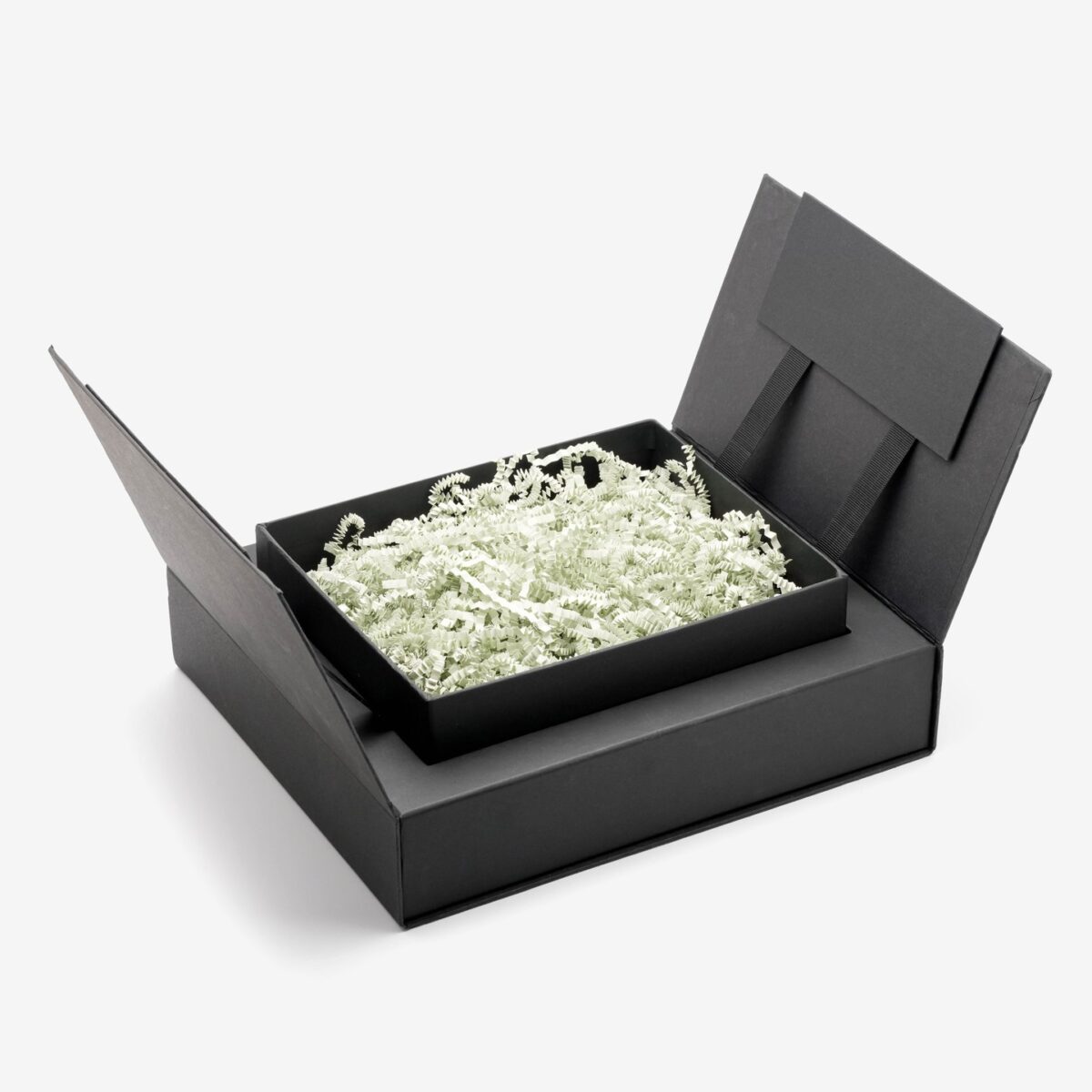 Gri kırpık zigzag kâğıt, hediye kutularına modern, sade ve zarif bir görünüm katar. ⚪🎁