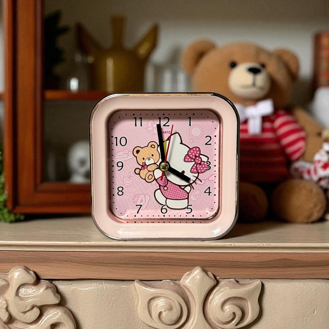 Hello Kitty Çalar Saat, sevimli tasarımı ve işlevsel özellikleriyle odanıza renk katıyor. 11×10 cm ölçülerindeki kompakt yapısı sayesinde masa, komodin veya çalışma masasında kolayca kullanılabilir. Pembe arka plan üzerine işlenmiş Hello Kitty ve oyuncak ayı figürü saatin dekoratif şıklığını artırır.
