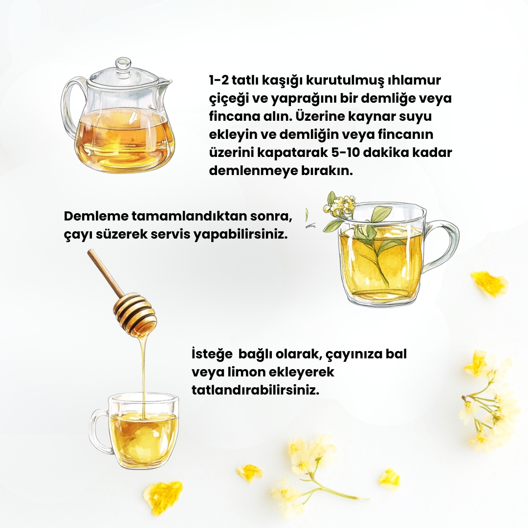 Bir fincan için 1 tatlı kaşığı ıhlamuru kaynar suya ekleyin, 7–10 dakika demlemeye bırakın. Dilerseniz bal veya limon ile tatlandırarak içebilirsiniz.