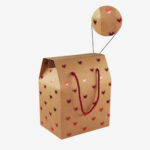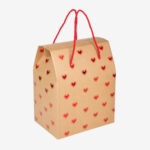 Red Craft Bag hediye kutusu, doğal kraft zemin üzerinde kırmızı kalplerle romantik ve çevreci bir sunum arayanlar için ideal bir tercihtir. Hem duygusal hem estetik bir dokunuş sunar.
