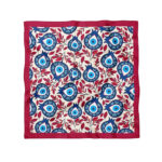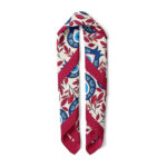 Özel üretim polyester ipek saten kumaştan hazırlanan bu fular, krem zemin üzerine işlenen mavi nazar boncukları ve nar motifleriyle dikkat çekiyor. Bordo kenar detayı ve yaprak desenleri, tasarıma enerjik ve sofistike bir hava katıyor. Hem günlük kullanımlarda hem de özel günlerde stilinizi tamamlayan anlamlı bir aksesuar.