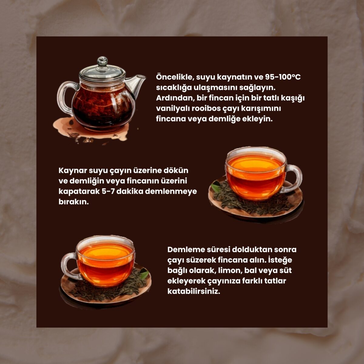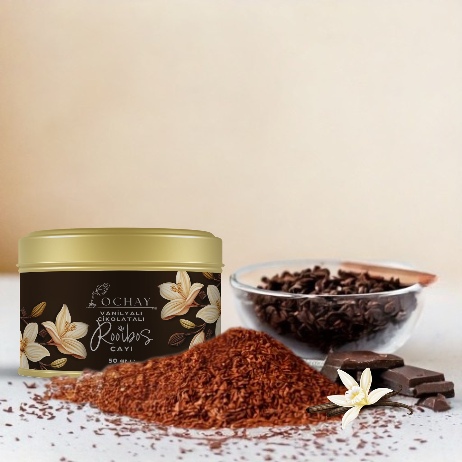 Soğuk kış günlerinde içinizi ısıtacak, yaz aylarında ise sütle veya soğuk demleme yöntemiyle keyifli bir alternatif olacak Vanilyalı Çikolatalı Rooibos Çayı, tatlı düşkünleri için ideal bir seçimdir. 🍫🌿✨
